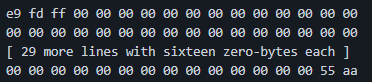 ; 무한 루프 loop: jmp loop ; https://engineersasylum.com/t/times-510-db-0-means/132/2 ; times: 반복 ; $: 현재 주소 ; $$: 처음 주소 ; 처음 부터 현재 주소까지 제외하고 0으로 채움 times 510-($-$$) db 0 dw 0xaa55