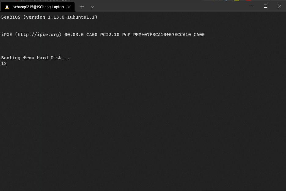 위 코드를 실행 bin파일로 컴파일하고, qemu로 실행시키면 다음과 같은 화면이 나옵니다.
